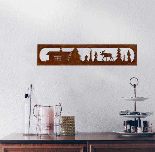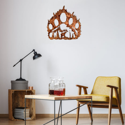Large Bear Paw with Bear Scene Lodge and Rustic Metal Decor