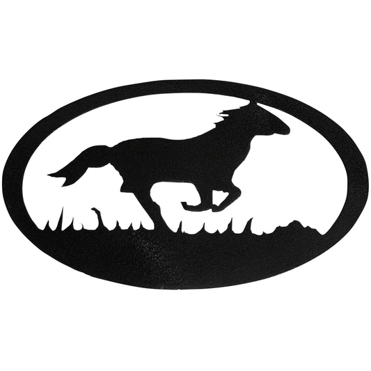 Horse Silhouette in an Oval Metal Decor with Rustic Theme