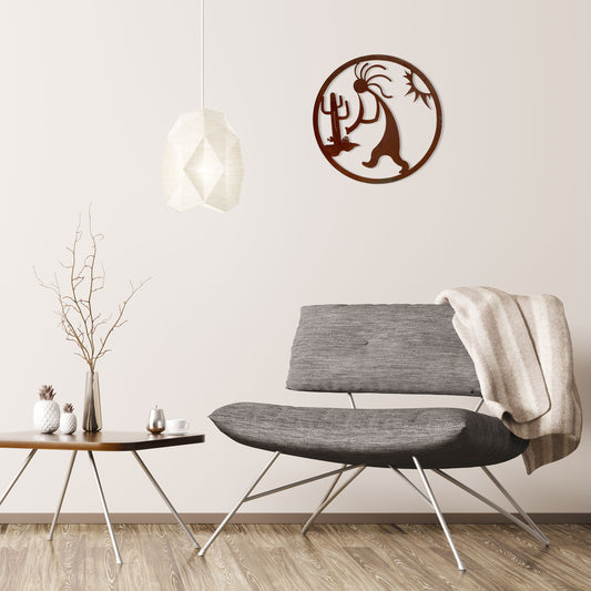 Kokopelli Circle Handcrafted Native Folklore Metal Wall Art
