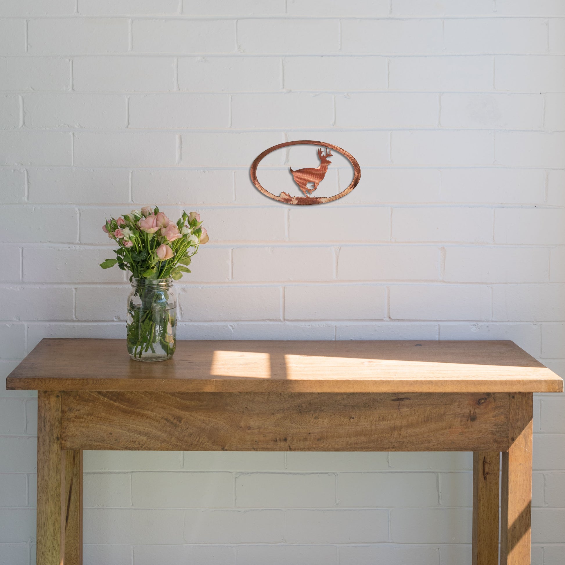 The Forest Dash Deer Oval Wall Decor captures the essence of a deer in full stride, offering a blend of natural elegance and artistic craftsmanship. Whether chosen as a statement piece or as part of a larger wildlife theme, this steel silhouette is a graceful tribute to the beauty and vitality of the forest.