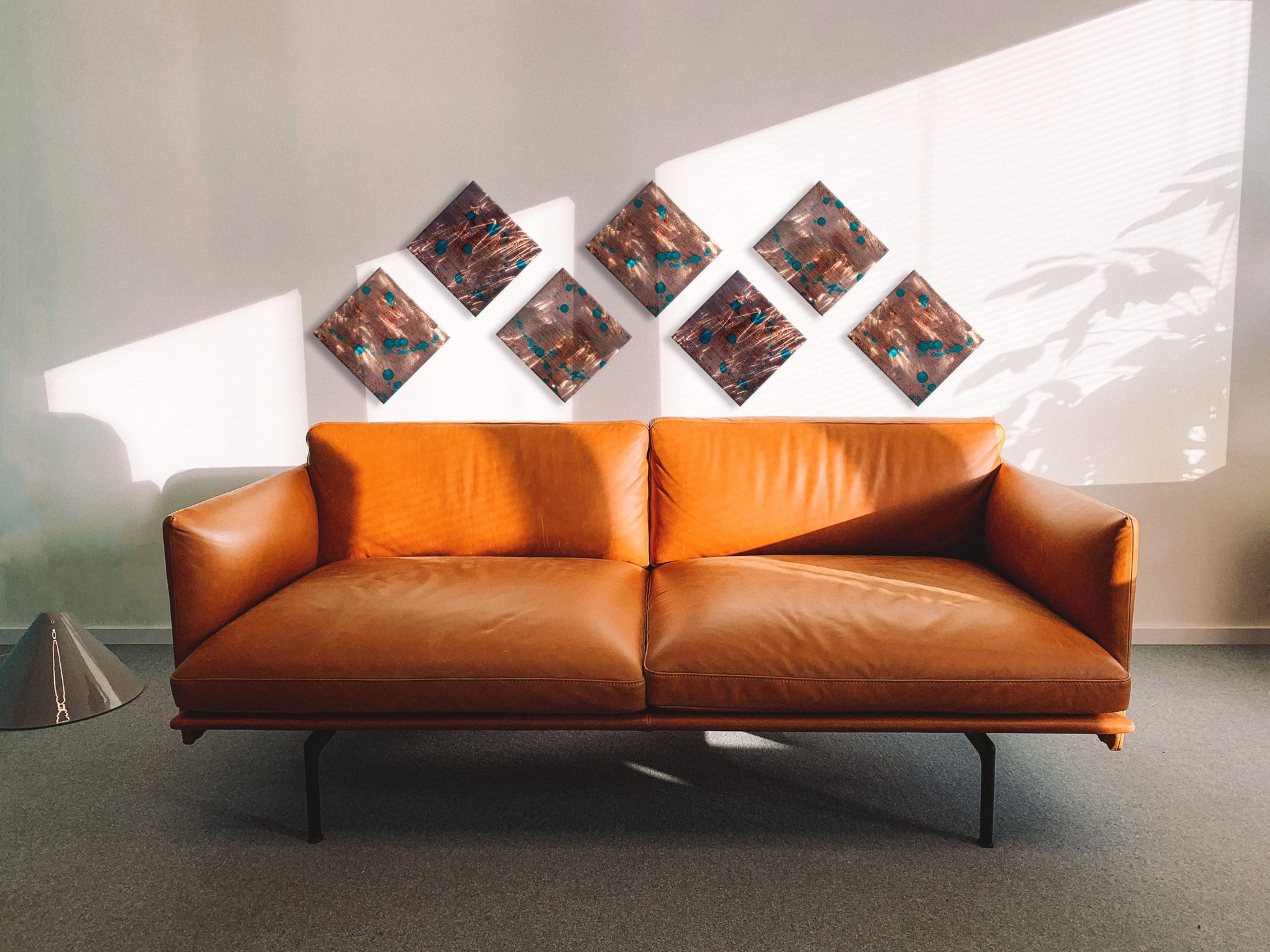 Unveil the essence of serene modern elegance right in your home with these captivating Copper Panels, a trio that breathes life into any room. Each panel, measuring a neat 12-inch square, extends a mere quarter-inch from the wall, offering a sleek profile with a profound visual impact.