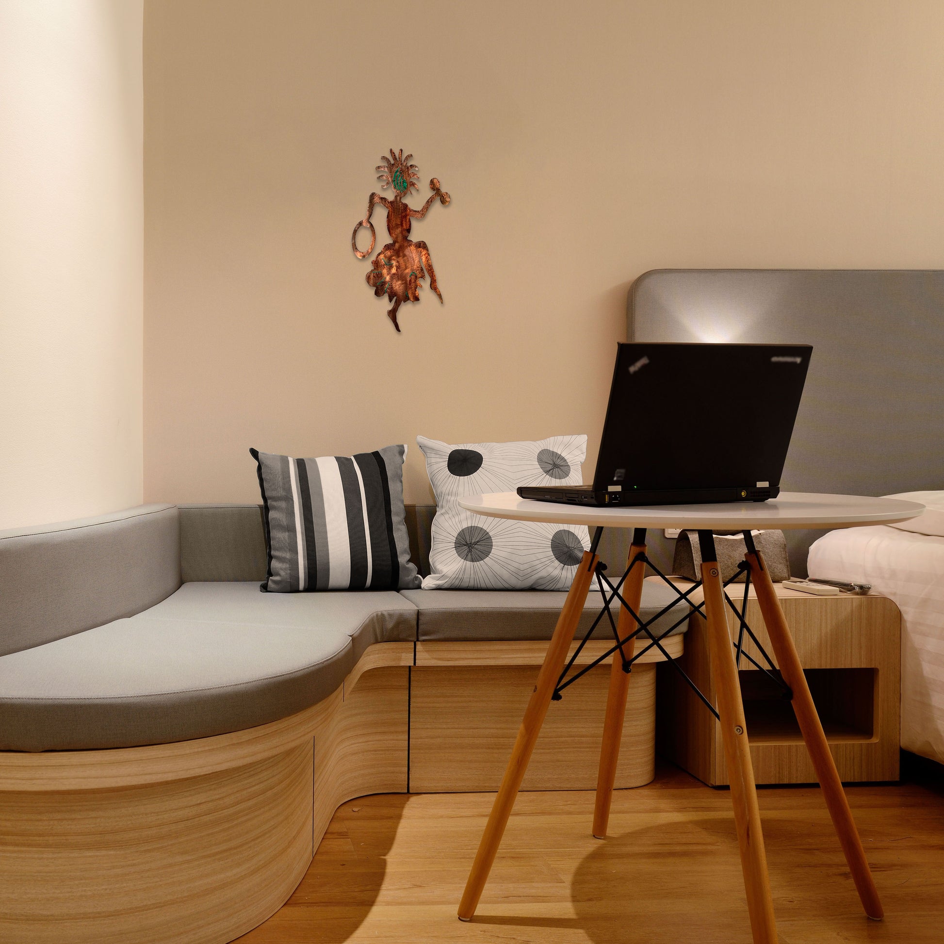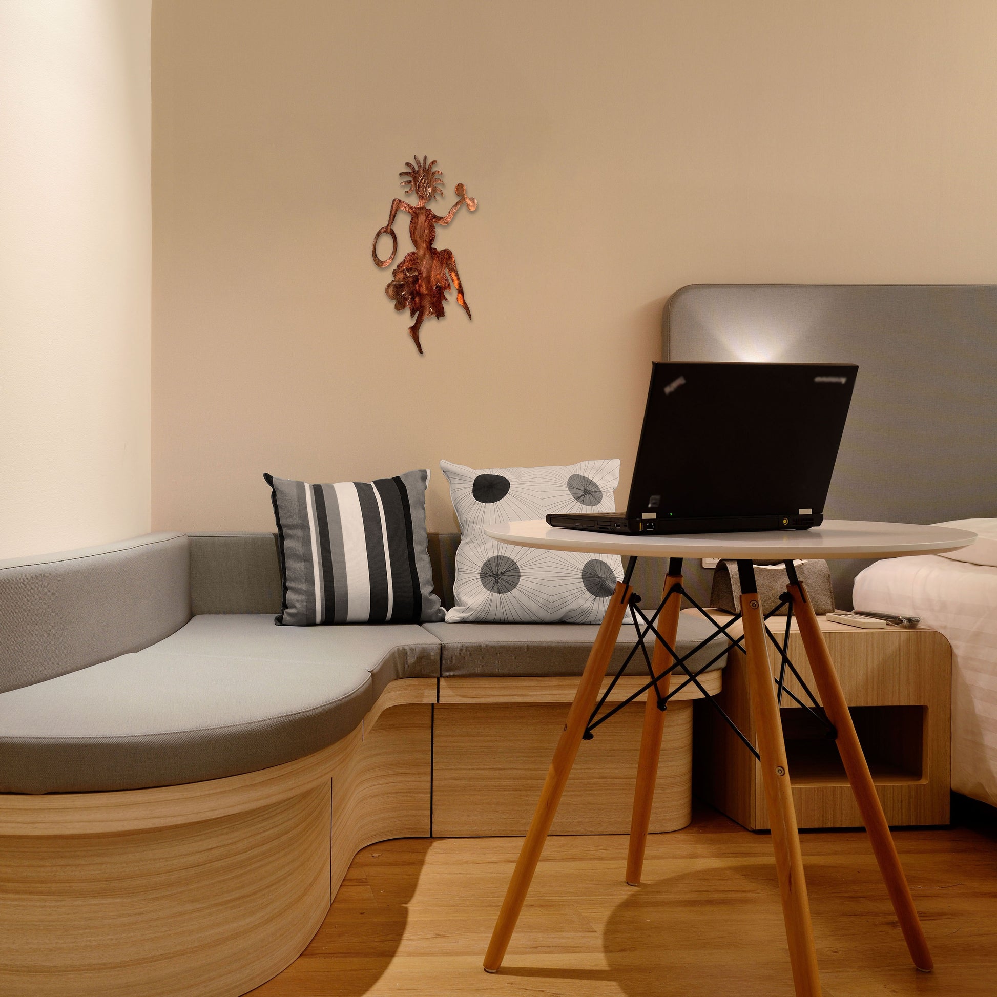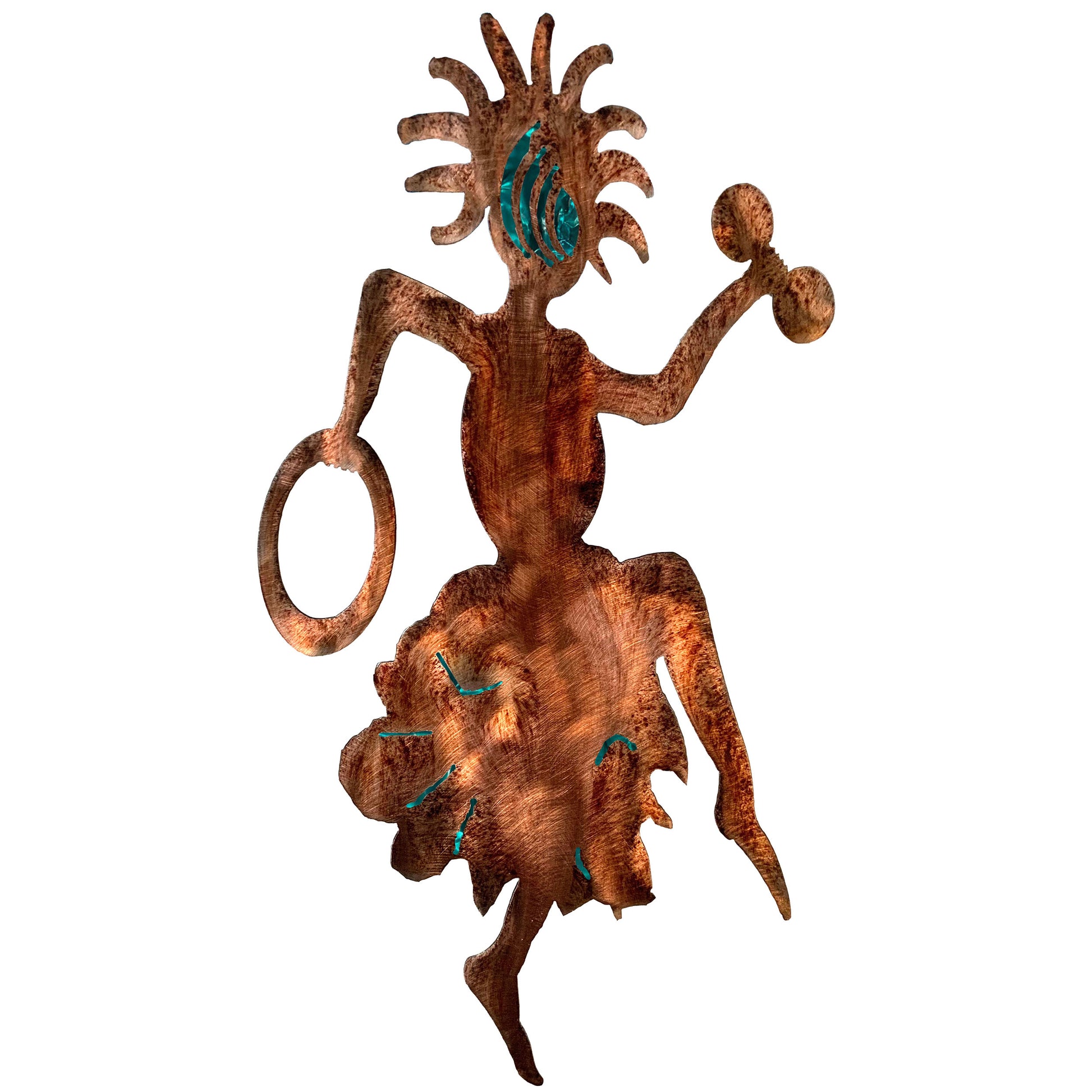 Immerse yourself in the rhythmic allure of the desert with the Desert Dancer 'Cindi' metal wall art. Handcrafted with precision, this piece captures the essence of an uninhibited dancer, from the graceful contours of her body to the intricate details of her hair, instruments, and flowing skirt.