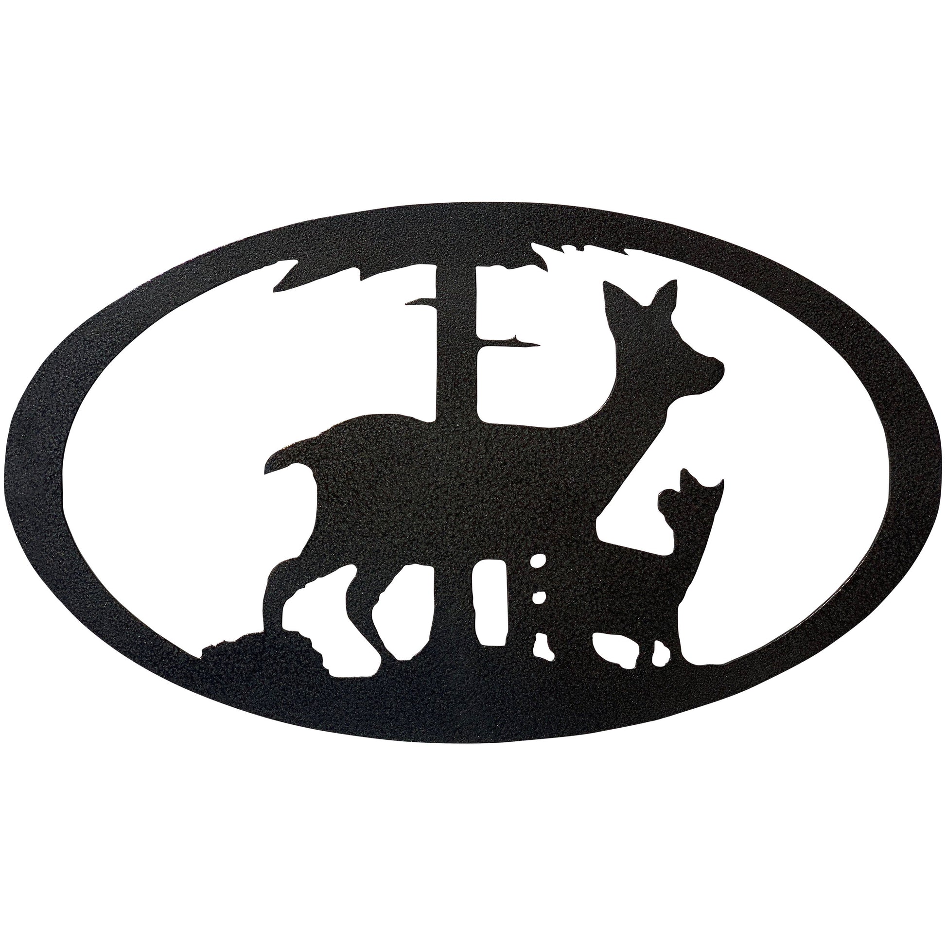 Deer Family Oval Wall Decor, a serene depiction of a doe and her fawn gracefully cut into a sturdy steel oval. This wall art captures the tender moment of wildlife in its natural habitat, bringing a piece of the forest's tranquility into your home. The black silhouette contrasts sharply against any wall, drawing the eye and heart to the warmth of the familial bond.