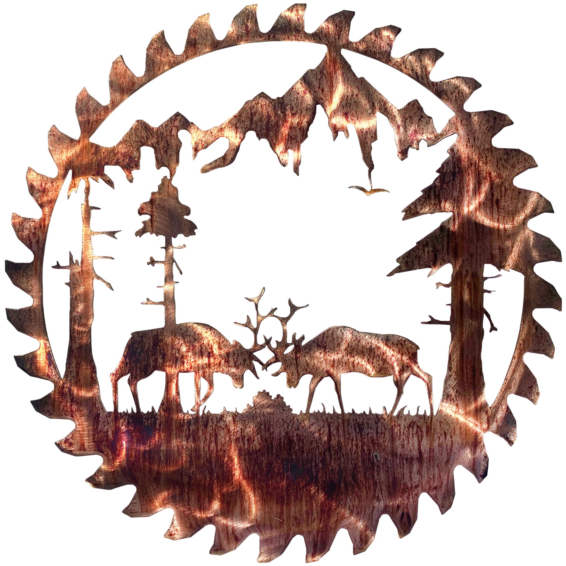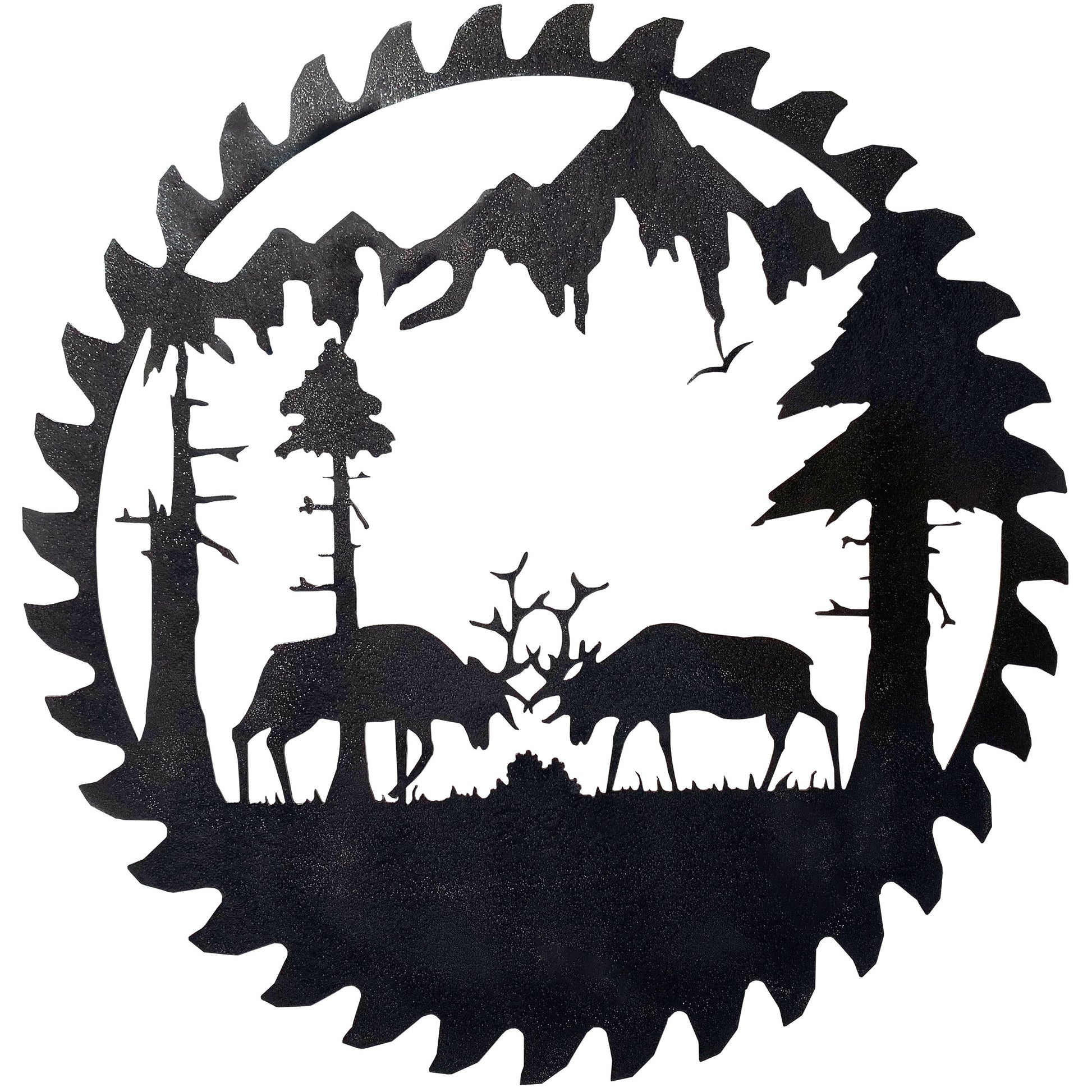 Fighting Elk Scene Buzz Saw Blade Cutout Metal Wall Decor