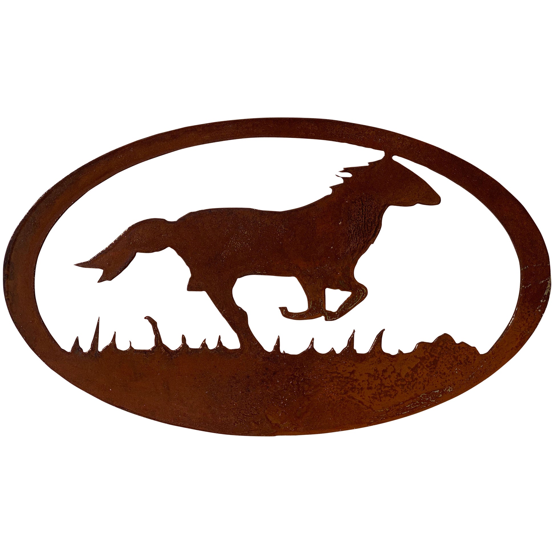 Horse Silhouette in an Oval Metal Decor with Rustic Theme