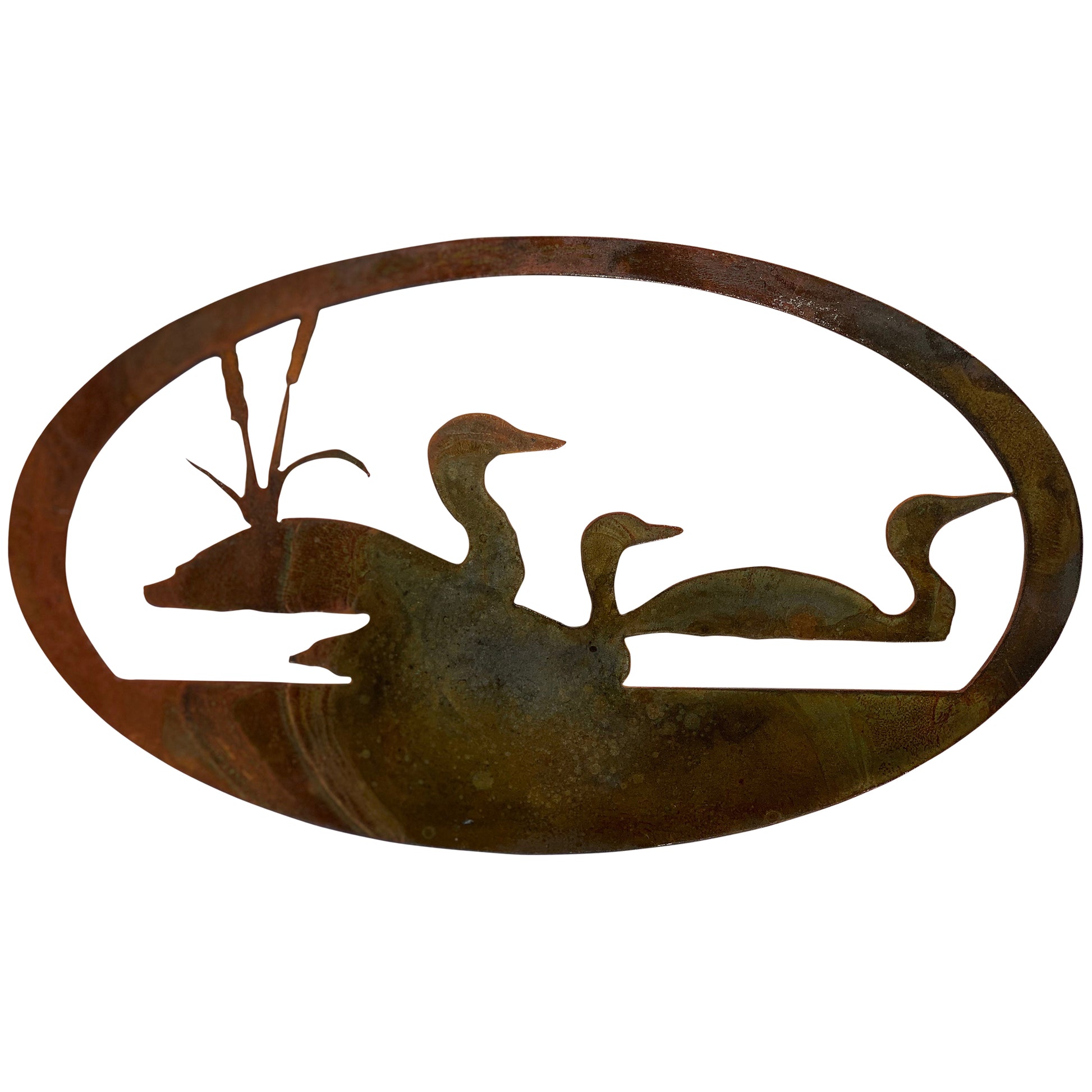 Invoke the serene spirit of the lake with the Lakeside Serenade Loon Oval Wall Decor. This charming piece of art features a trio of loons, known for their haunting calls and peaceful presence, gliding on a calm lake. The surrounding oval frame accentuates the stillness of the scene, reminiscent of a tranquil morning by the waterside. Each bird is intricately depicted, cut from high-quality steel, in a piece that's as enduring as the memories it represents.