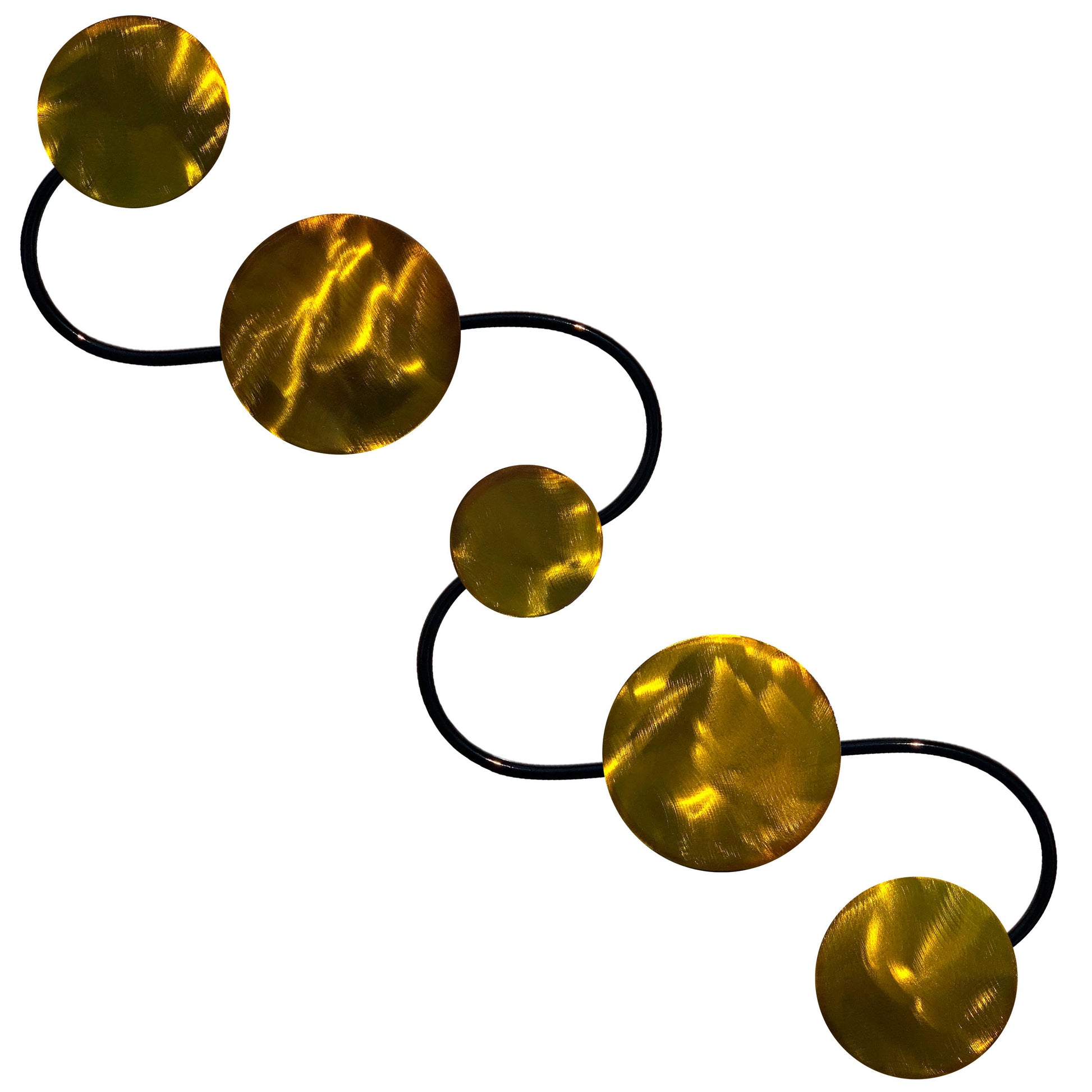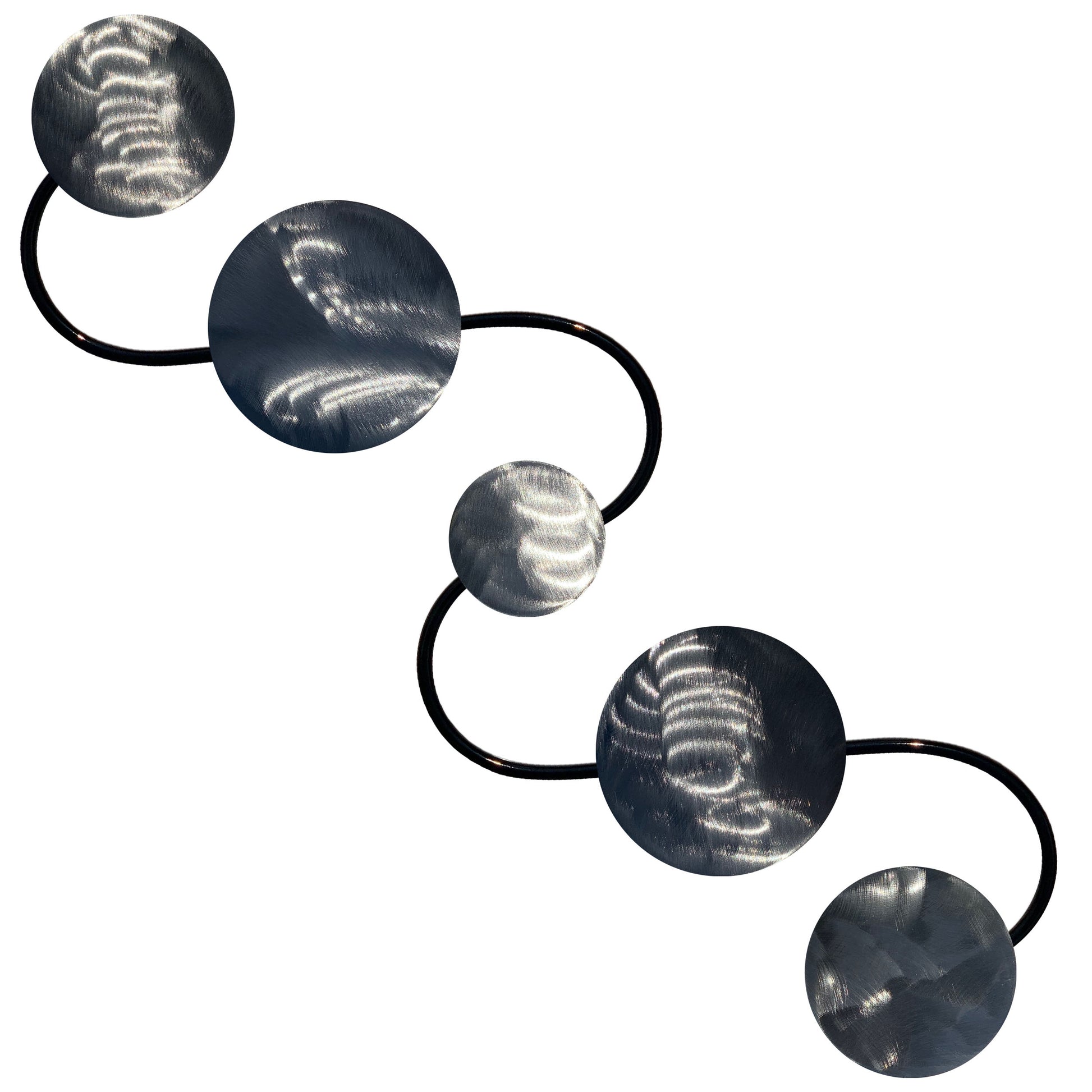 Add a fluid touch of modern art to your walls with the "Sidewave Metal Art Decor." This piece captures the essence of creativity with its sleek, wavy line design interspersed with circular accents. Crafted with versatility in mind, the Sidewave can be displayed horizontally or vertically, adapting to your space and personal style. Installation is effortless, thanks to the convenient hangers on each end.
