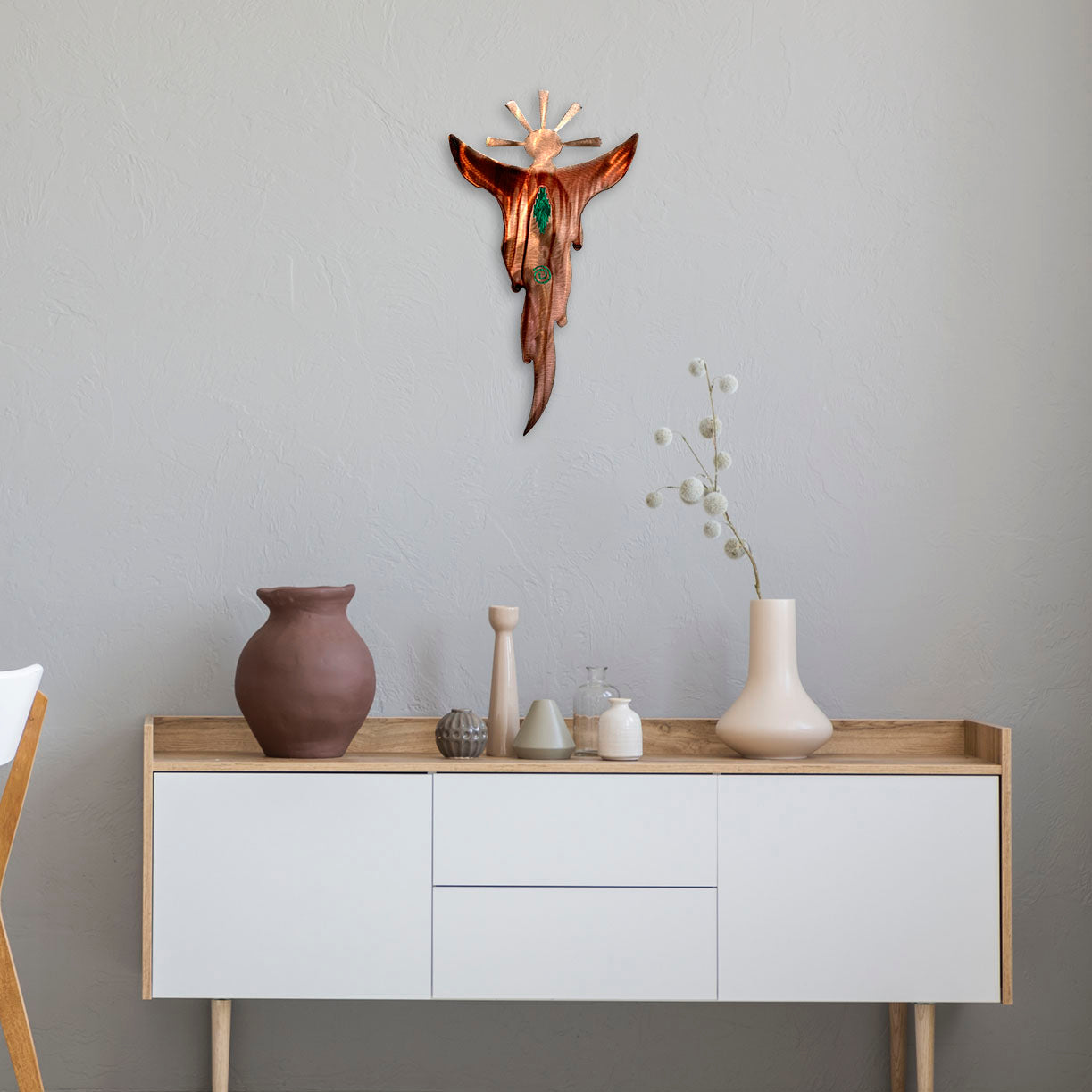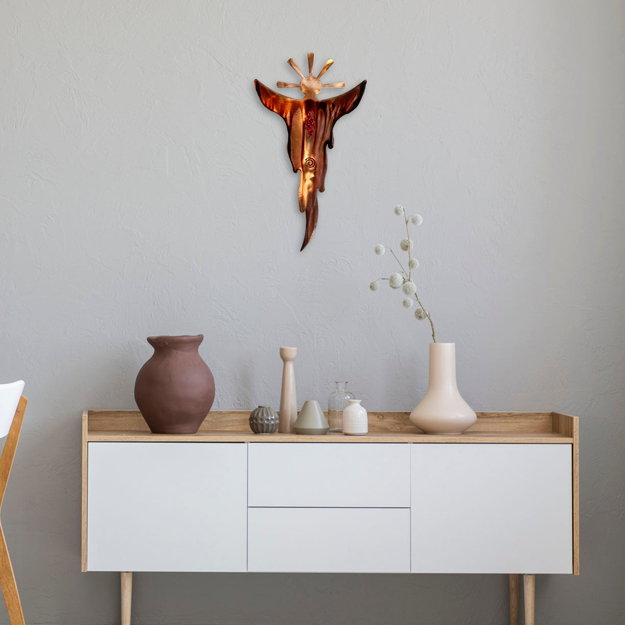 The "Smoke Spirit" showcases an intricate silhouette that seems to emerge and dissipate, much like the ethereal nature of smoke. The shimmering coppery hue of the metal captures the warmth of ancient hearths, where stories and legends were passed down through generations.