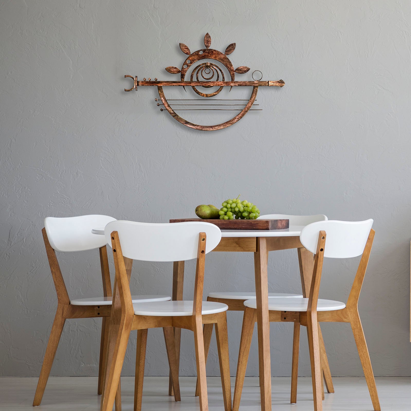 Made with high-quality steel, this wall art is reminiscent of mythical folklore and musical instruments in the ancient kingdom of Atlantis. It's designed with a distressed copper finish to lend authenticity to its inspiration.