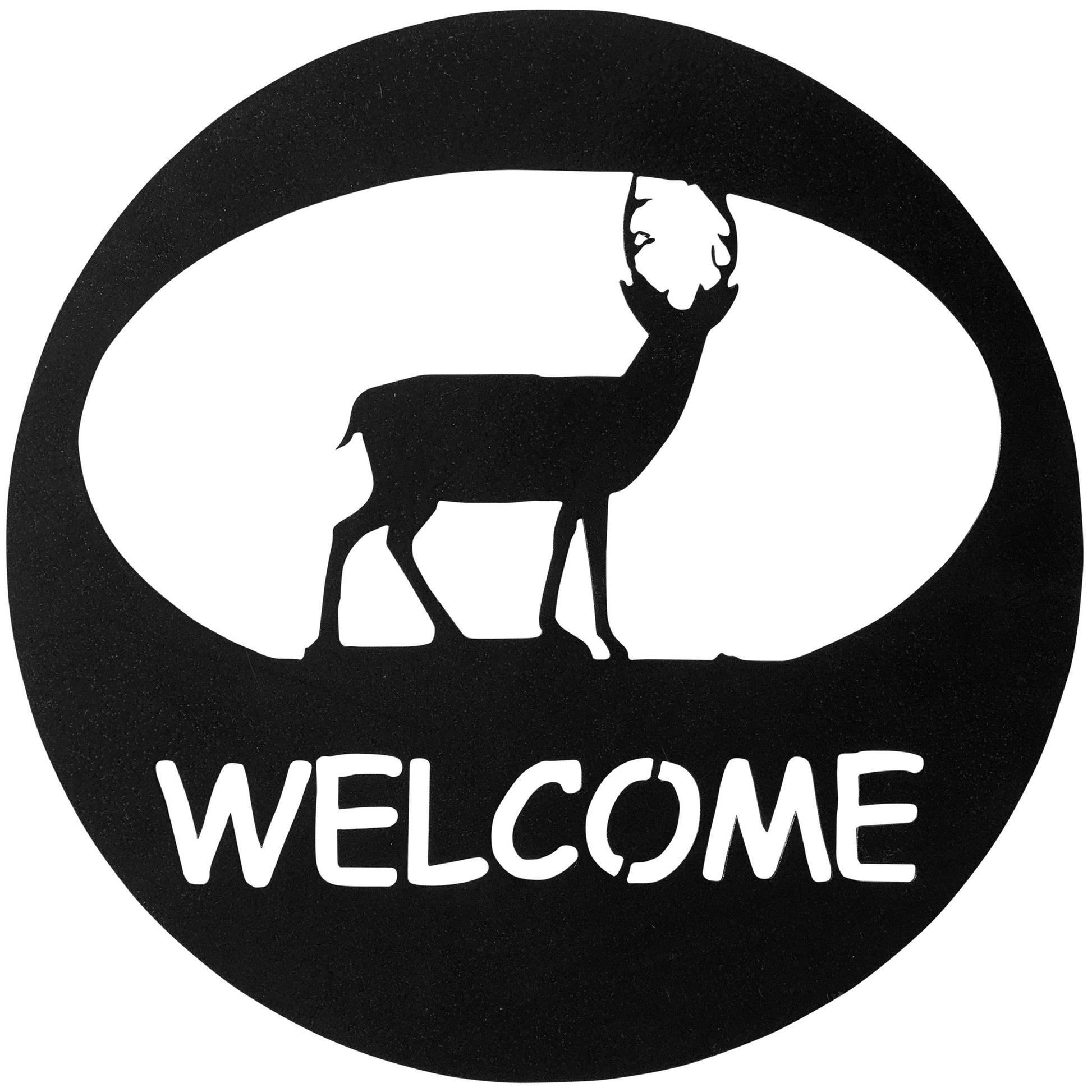 The Standing Deer Welcome Sign is a delightful emblem of the great outdoors, capturing the grace and poise of a deer in its natural habitat. The art piece frames a deer at attention within a circular border, with "WELCOME" cleanly cut beneath it. This design speaks to the heart of anyone with an affinity for wildlife, hunting, or rustic decor, offering a silent nod to the serene beauty of nature.