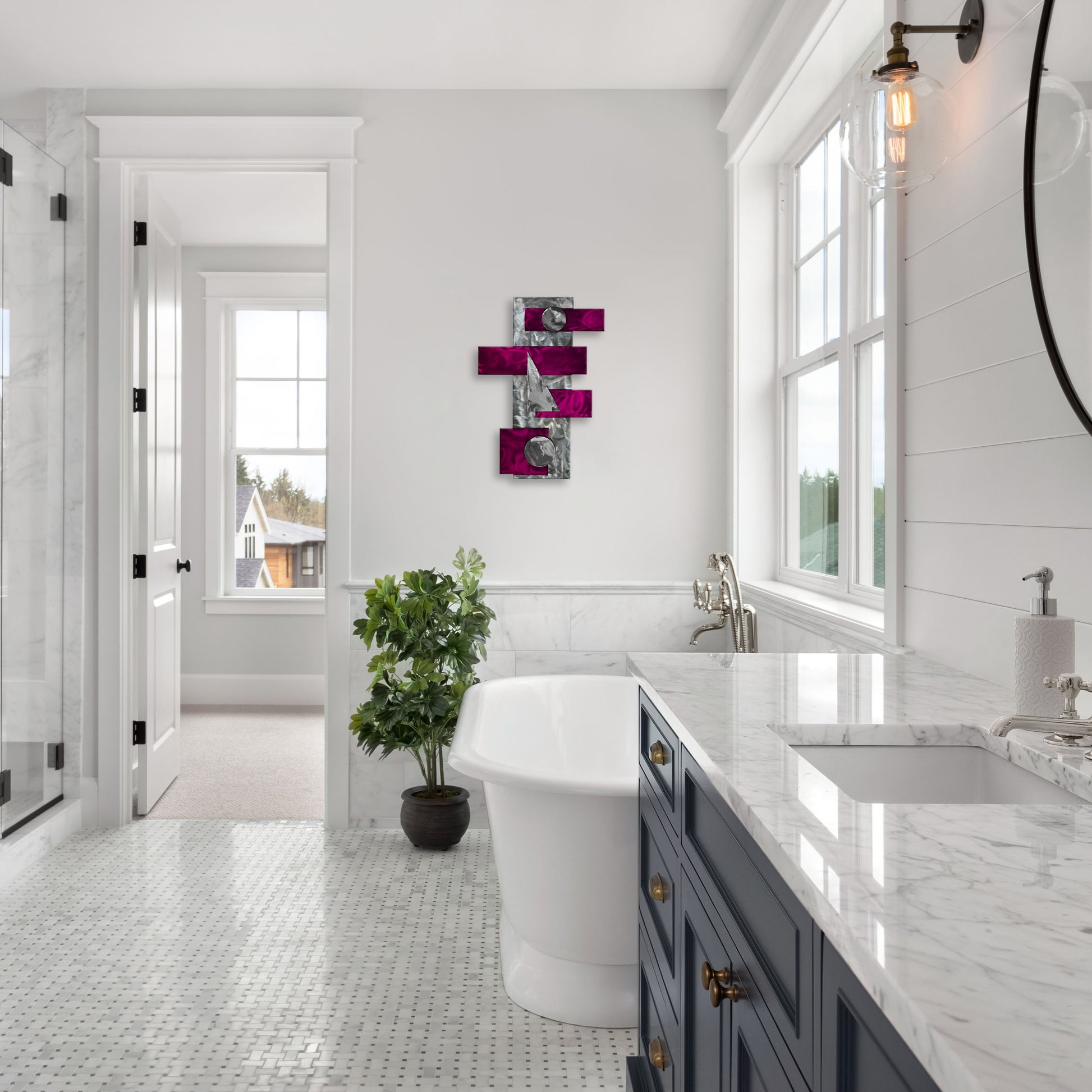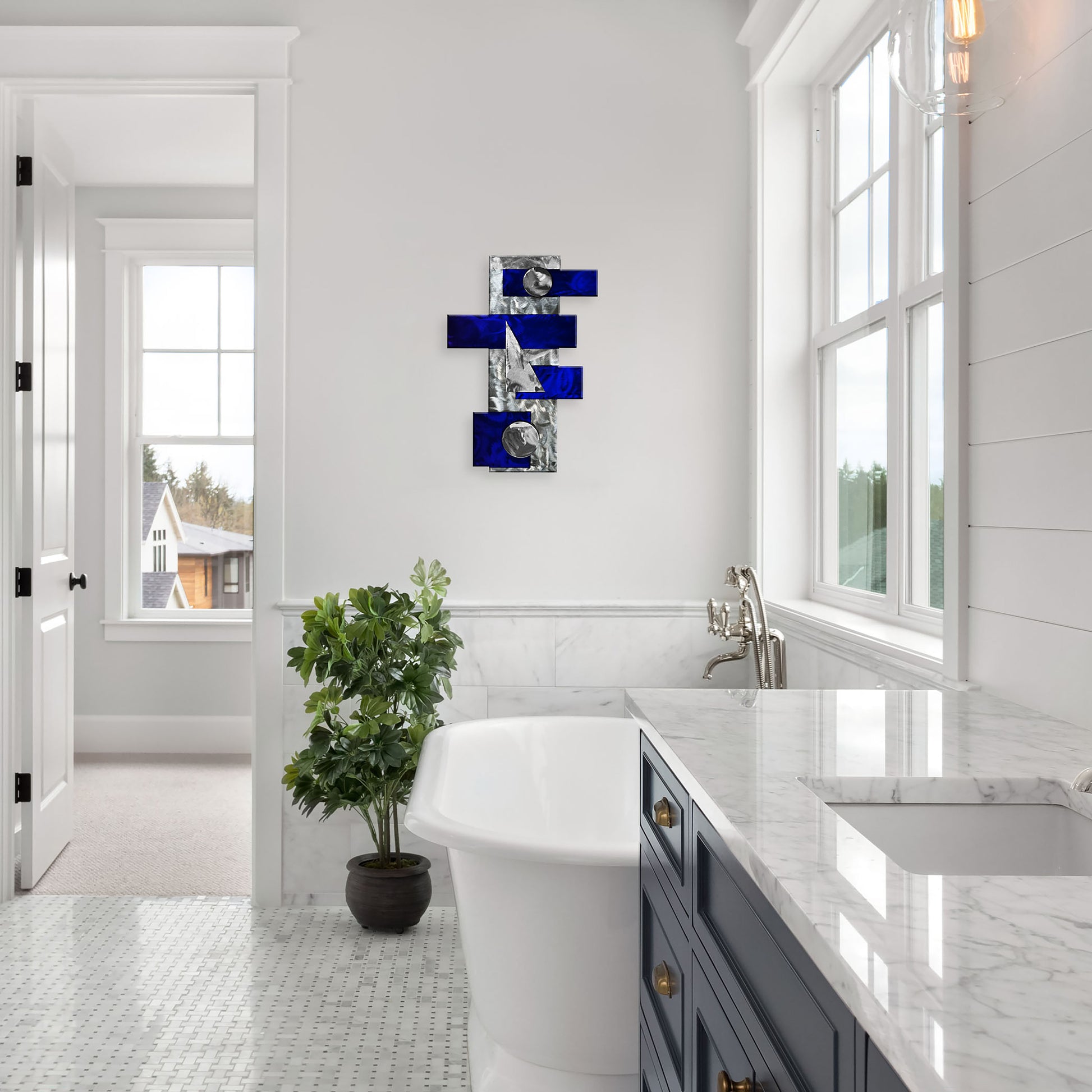 - Reflective Depth: The polished silver background interacts with light to add depth and a dynamic quality to the artwork.