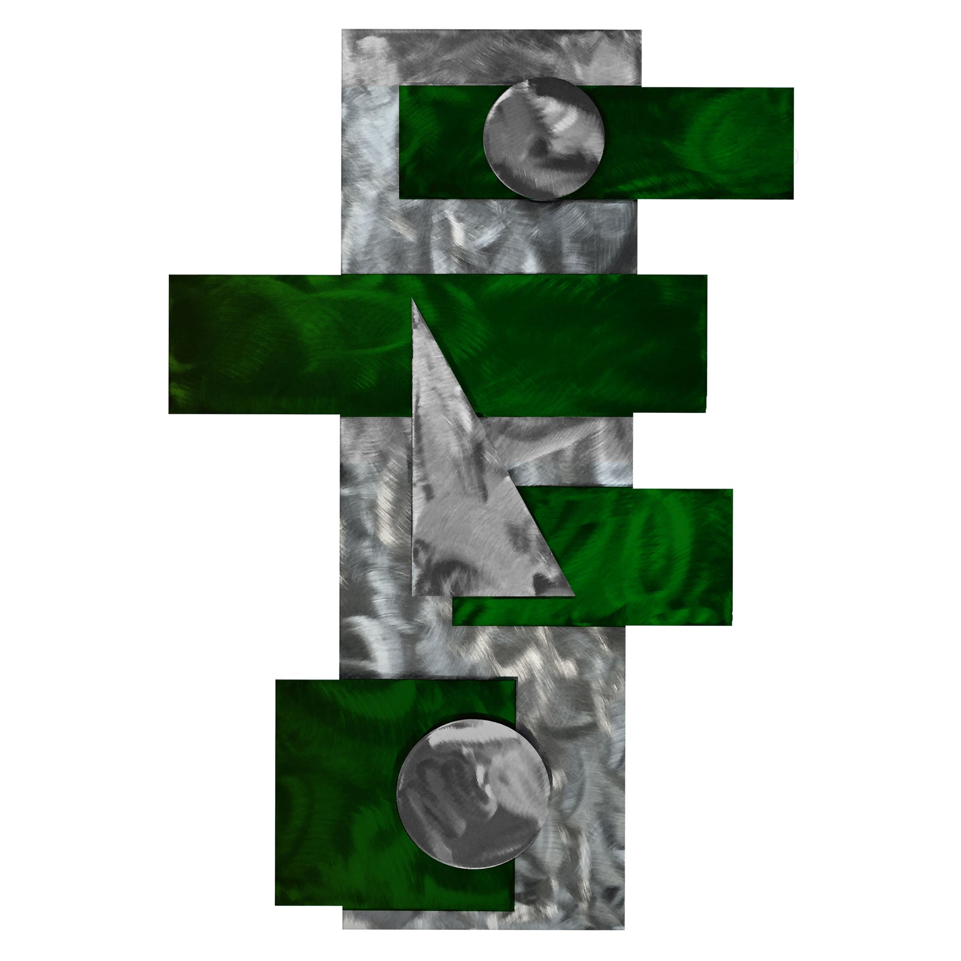 Bring a fusion of art and aspiration into your space with this evocative wall sculpture, aptly named "Strategy". Each piece, measuring 15.5 inches by 23 inches, is a visual representation of the journey from dream to achievement, with a bright polished silver steel backplate symbolizing abstract ideas and bold color blocks in candy green signifying the actionable steps towards those dreams.