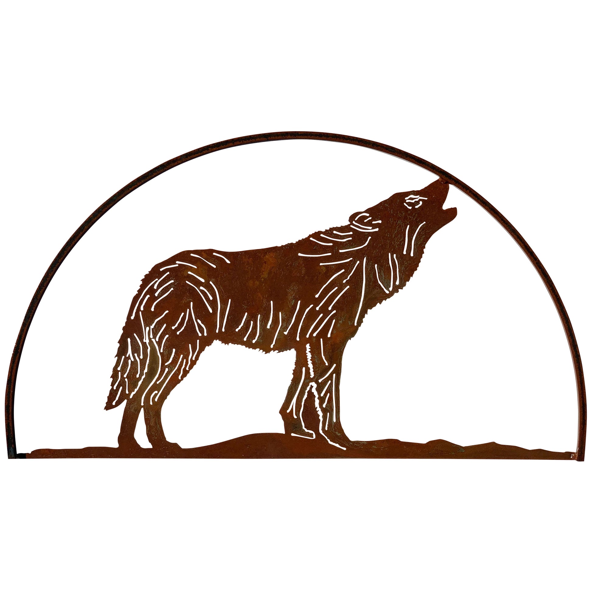 Is it a coyote or a wolf? We'll let you decide with our Coyote/Wolf Hoop Metal Art, which depicts the animal lifting its head to howl or cry. The design also details the fur of the wolf/coyote with intricate fine lines and finishes the artwork in a semi-circle hoop frame.